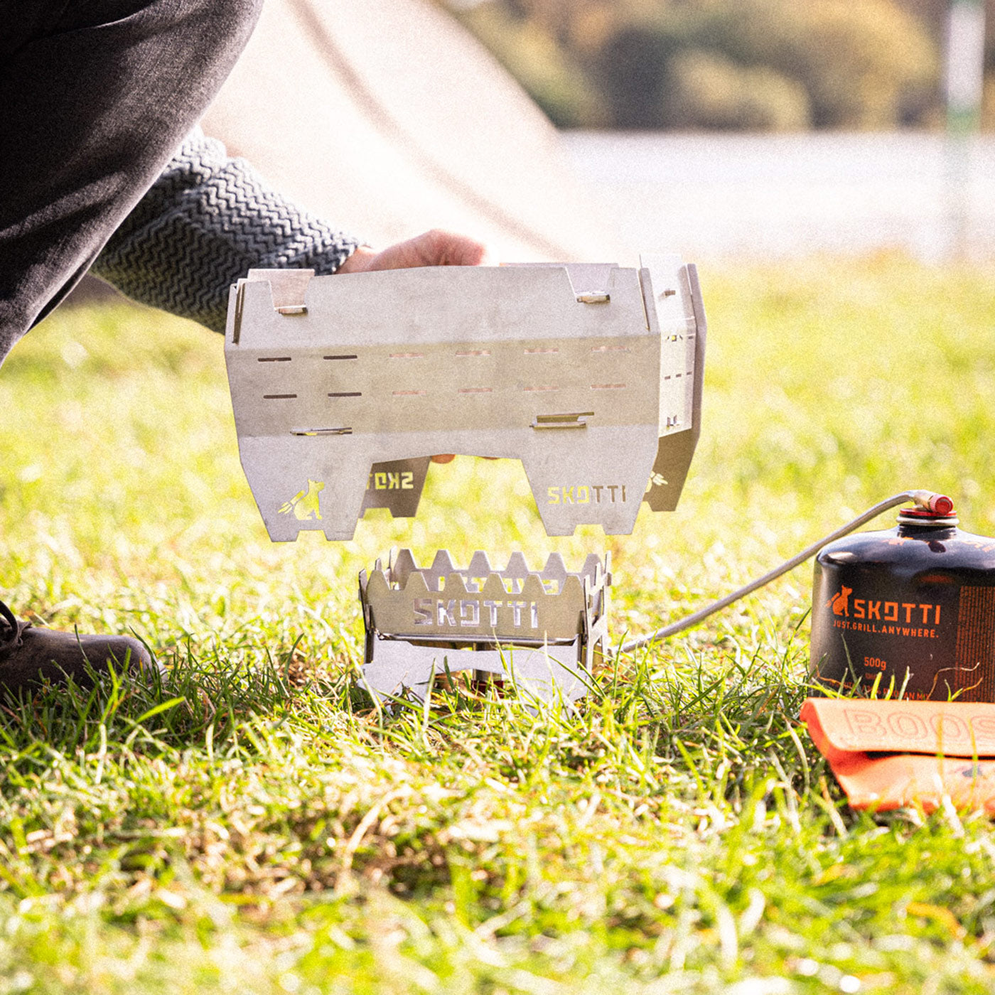 Der SKOTTI Booster ist multifunktional. Zusammen mit dem SKOTTI Mini kannst Du ihn sogar als Gasgrill verwenden.